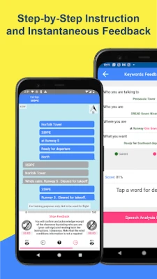 AI-based air traffic controllers and instantaneous feedback through voice recognition and speech analysis guide new pilots through realistic scenarios toward proficiency in aviation phraseology and communication.