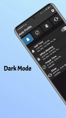 Features: * Multilingual * Dark Theme * Auto Turn On Vibrate Mode * Auto Turn On others to Normal. * Auto Turn On Silent Mode * Auto Turn On Do Not Disturb * Auto Return to Previous Mode.
