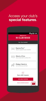 o No need to wait in a checkout line. Easily shop, scan your item’s barcode, pay within the app, and go! (Available in select clubs only.)