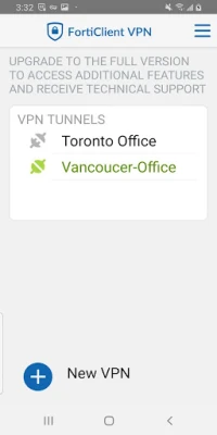 This easy to use app supports both SSL and IPSec VPN with FortiToken support. The VPN features included in this free app are limited so upgrade to FortiClient - Fabric Agent for advanced functionality and technical support.