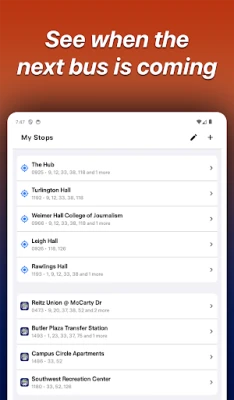 Save your most frequently visited stops to quickly check when the next bus is coming.