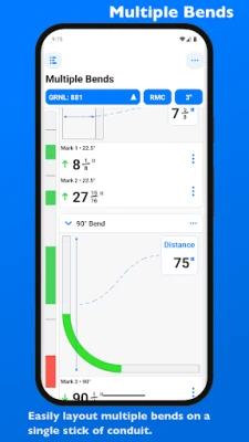 Plus you have the ability to layout multiple bends on a single conduit, and get each measurement for a mark on the conduit. With the option to easily flip an individual or set of marks per bend.