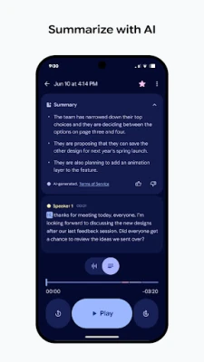 Recorder brings new powers to meetings, lectures, band practices, family memories – anything that you want to capture. Recorder automatically transcribes and labels what you record so that you can easily find the parts that matter to you. Save, edit, share, listen to later, or even summarize. Available on Wear OS with a dedicated watch face tile to quickly capture moments and thoughts on your phone or Pixel Watch.